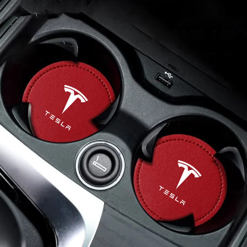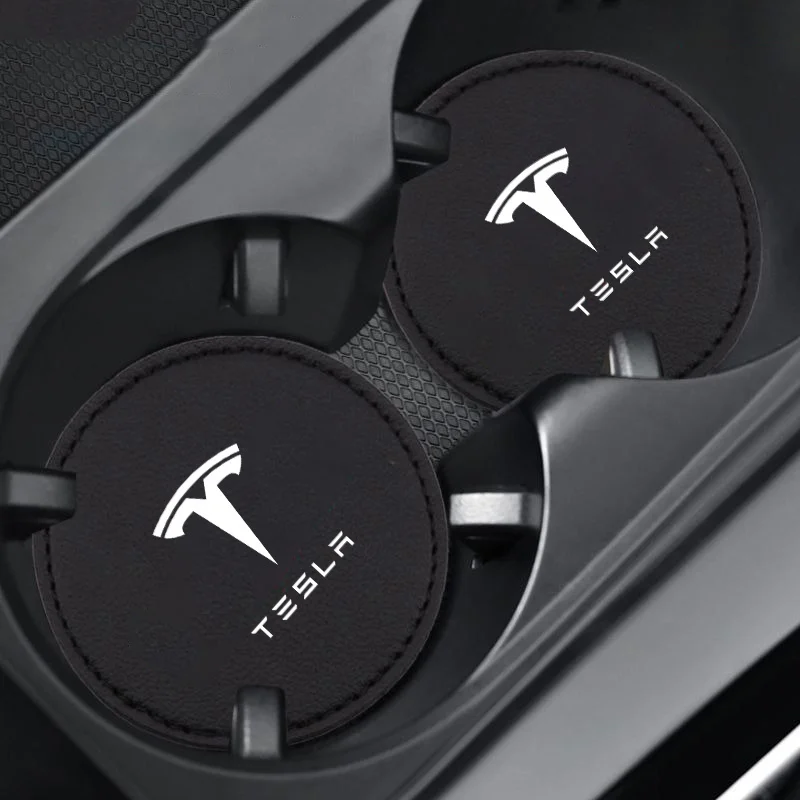 2Pcs Car Logo Non Slip Water Cup Pad For Tesla Model 3 Model S X Y Roadster SpaceX Auto Coasters Interior Anti-skid Mat Holders