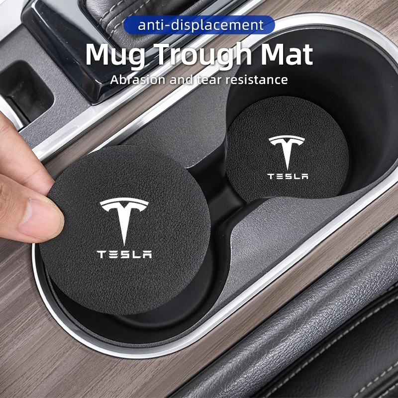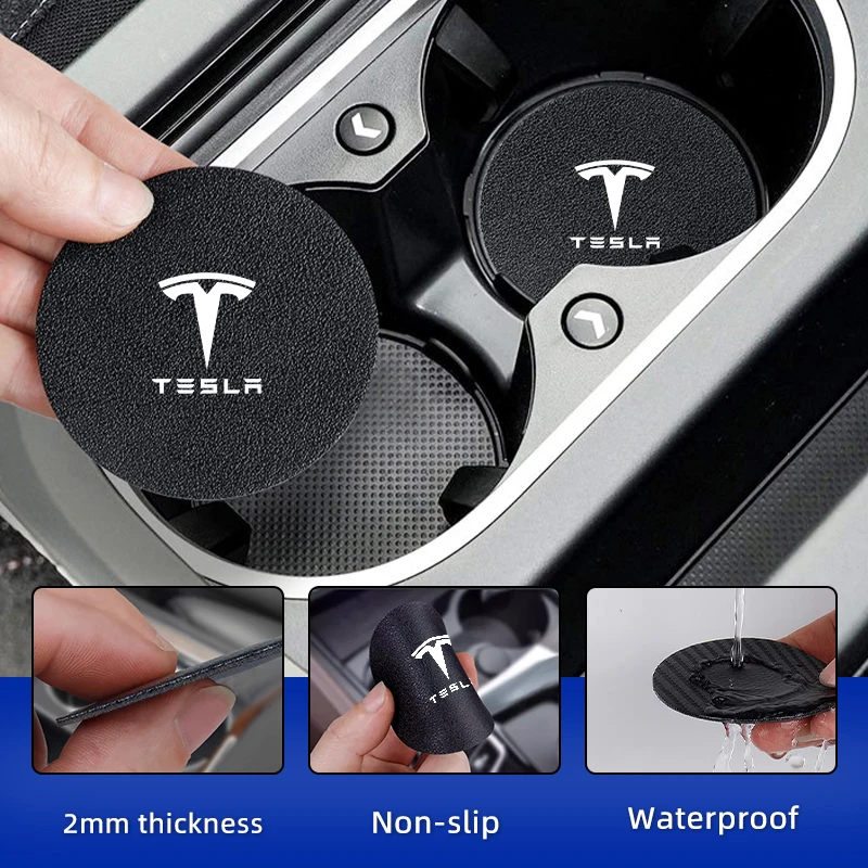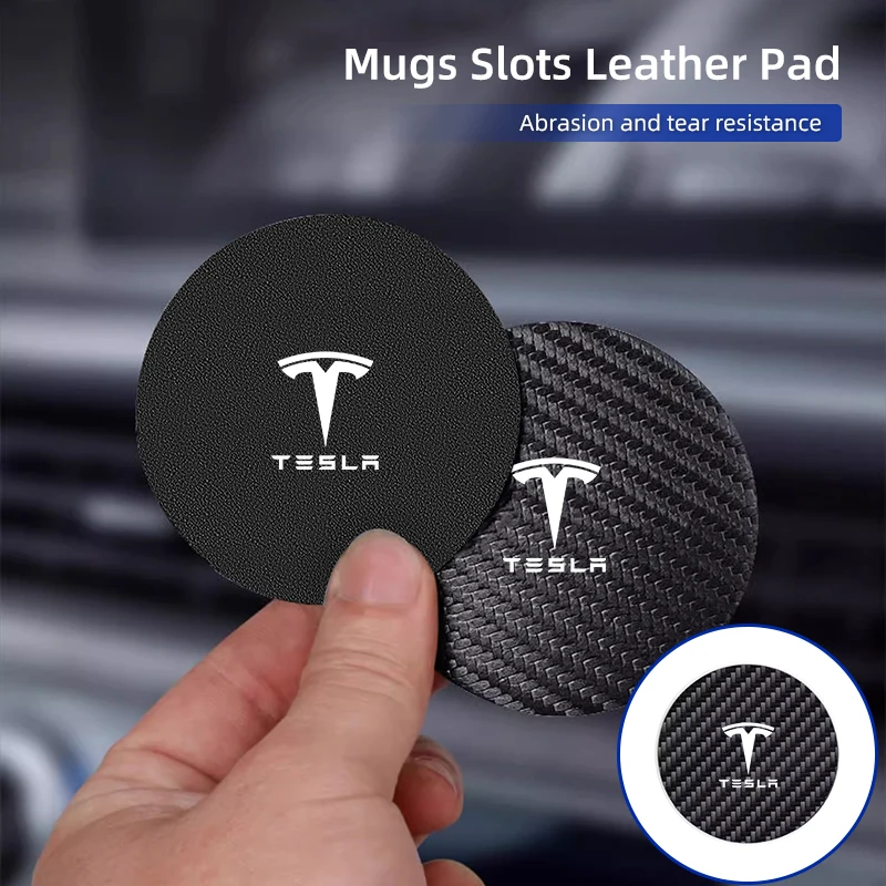 Car Coaster Carbon Mug Drinking Pad Cup Non-Slip Mat Accessories Pads For Tesla Model 3 Model S Model X Model Y Roadster Bonina