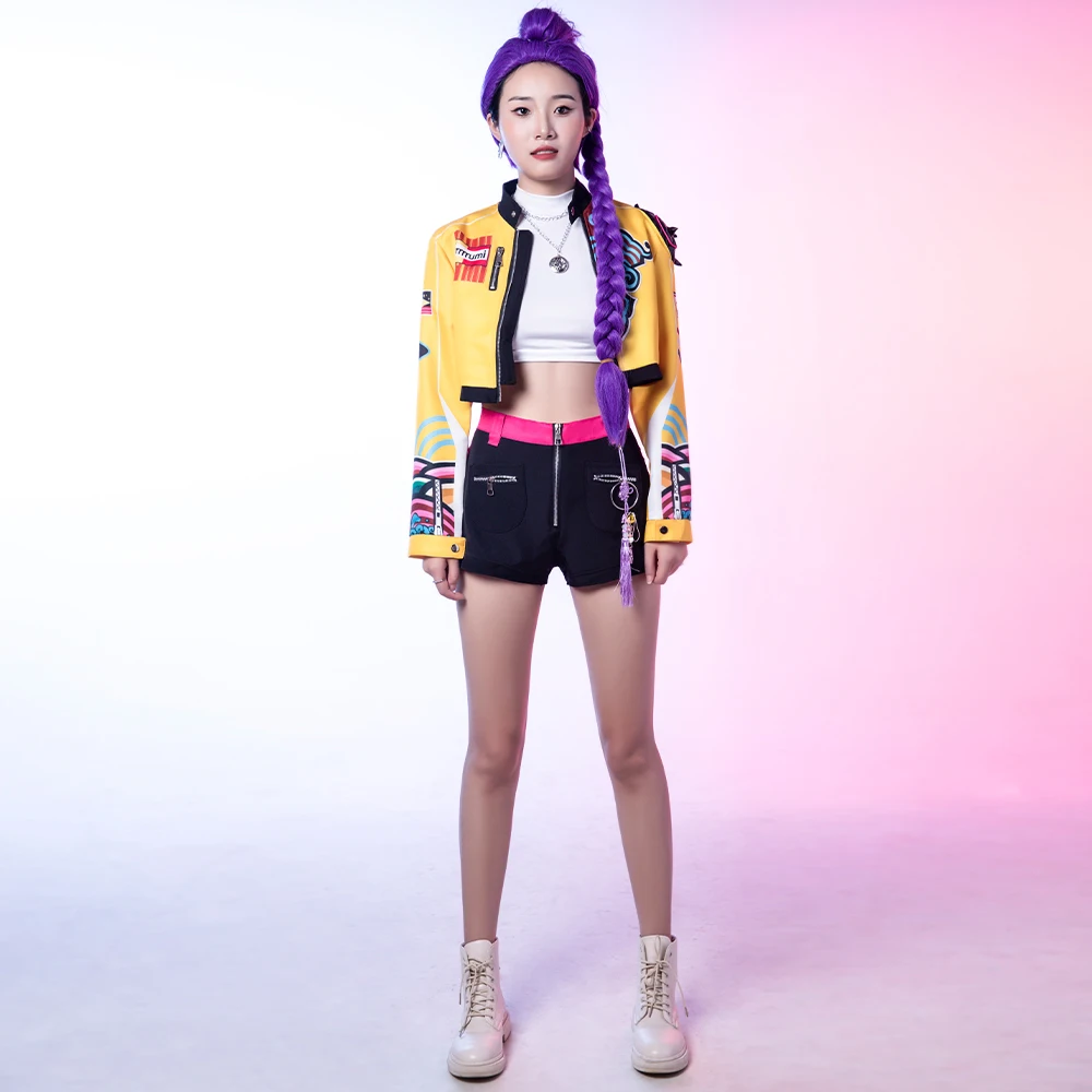Halloween Performance Costume Cosplay Suit for K-Pop Costume Rumi Women's Adult Print Top Shorts Coat Necklace Pendant Outfit